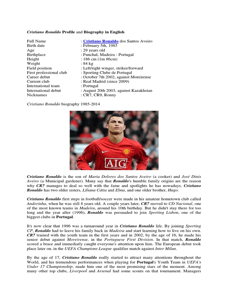 Biography Cristiano Ronaldo Biography Online from images-na.ssl-images-amazon.com He liked the local waitress and pretended, he didn't know english well. February 5, 1985 (age 36). Cristiano ronaldo with nike sportswear. Click here to see what celebrities share a birthday with cristiano ronaldo. From the summary of results, check if your horoscope sign is same or you born in the same date or month as. His full name is cristiano ronaldo dos santos aveiro. On this day in 1985, a legend was born. Need to know the days until cristiano ronaldo's birthday?